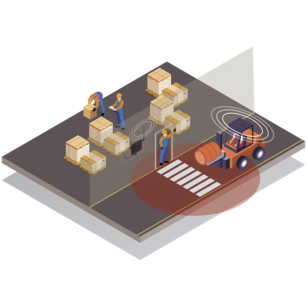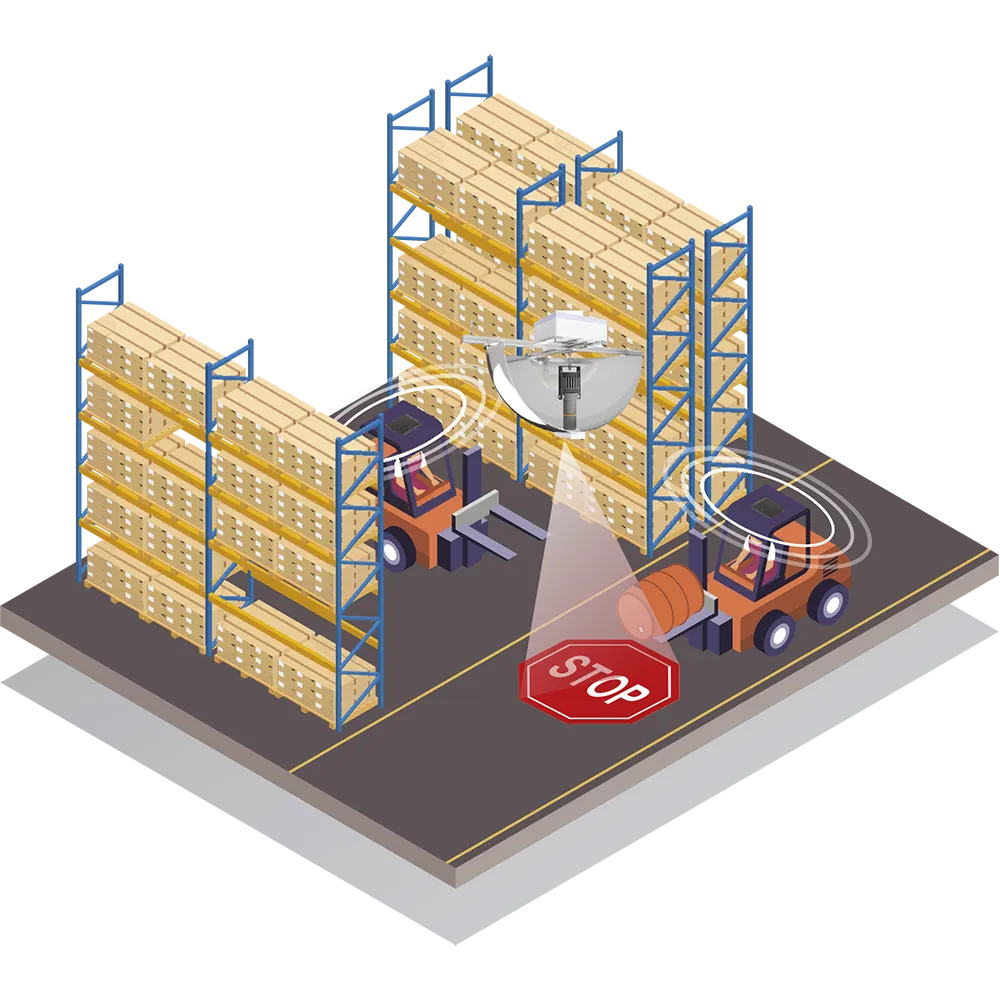 Varoita automaattisesti ja älykkäästi trukin lähestyessä risteyttä, sokeaa kulmaa tai jalankulkijoiden ylityspaikkaa.